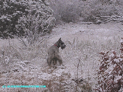 The SWS Canine, a Giant Schnauzer, is well rehearsed in retrieval of objects drawn to by scent in a multitude of terrain. Her training in this mission was in steep rocks with below freezing conditions.